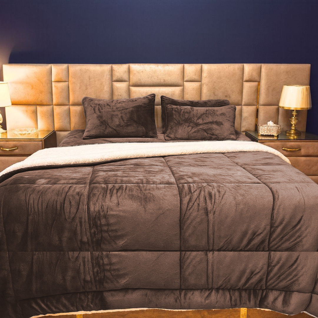 COZY UP TO PLUSH TEXTURES AND SUPERIOR WARMTH: The soft feel of the Luster Comforter is an elegant way to keep your bed cozy and warm,REVERSIBLE: These reversible down alternative comforters boast a luxurious micro mink texture that reverses to a soft ivory Sherpa.SECURED FILLING: The box-stitch pattern distributes fill evenly to keeps fiber in place for an even layer of warmth.HYPOALLERGENIC - 100-Percent Hypo-allergenic, Allergy Free Poly Fiber Fill. A perfect choice for those that suffer from allergies!LONG-LASTING & DURABLE: Fade, wrinkle & shrink resistant.EASY CARE:Â Dryable.CERTIFIED: Tested to be free of harmful substances. Superior product safety and consumer confidence.